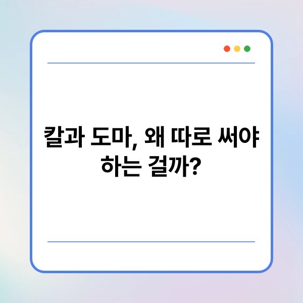 A1: 칼과 도마를 따로 사용하는 것은 교차 오염을 방지하기 위해 필요합니다. 고기와 채소를 구분하여 사용하면 식중독 위험을 줄일 수 있습니다.