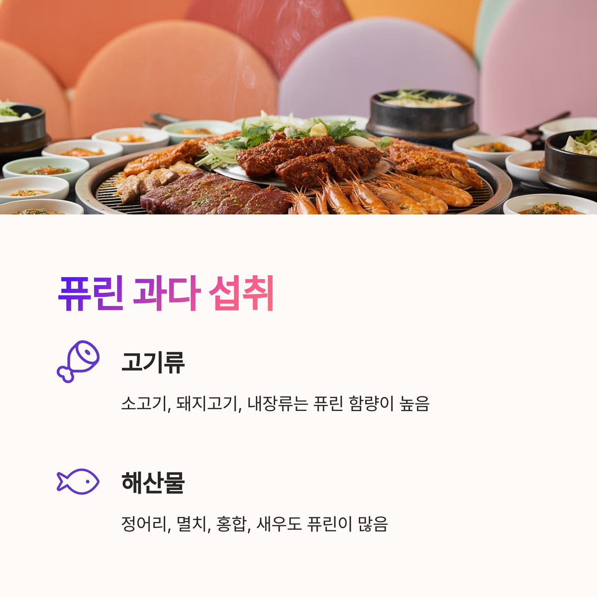 퓨린은 음식에서 주로 들어오는 물질로, 간에서 요산으로 바뀌어요. 고기, 특히 소고기, 돼지고기, 내장류(간, 곱창)는 퓨린 함량이 높아 통풍 원인으로 잘 알려져 있어요. 해산물 중에서도 정어리, 멸치, 홍합, 새우는 퓨린이 많죠.