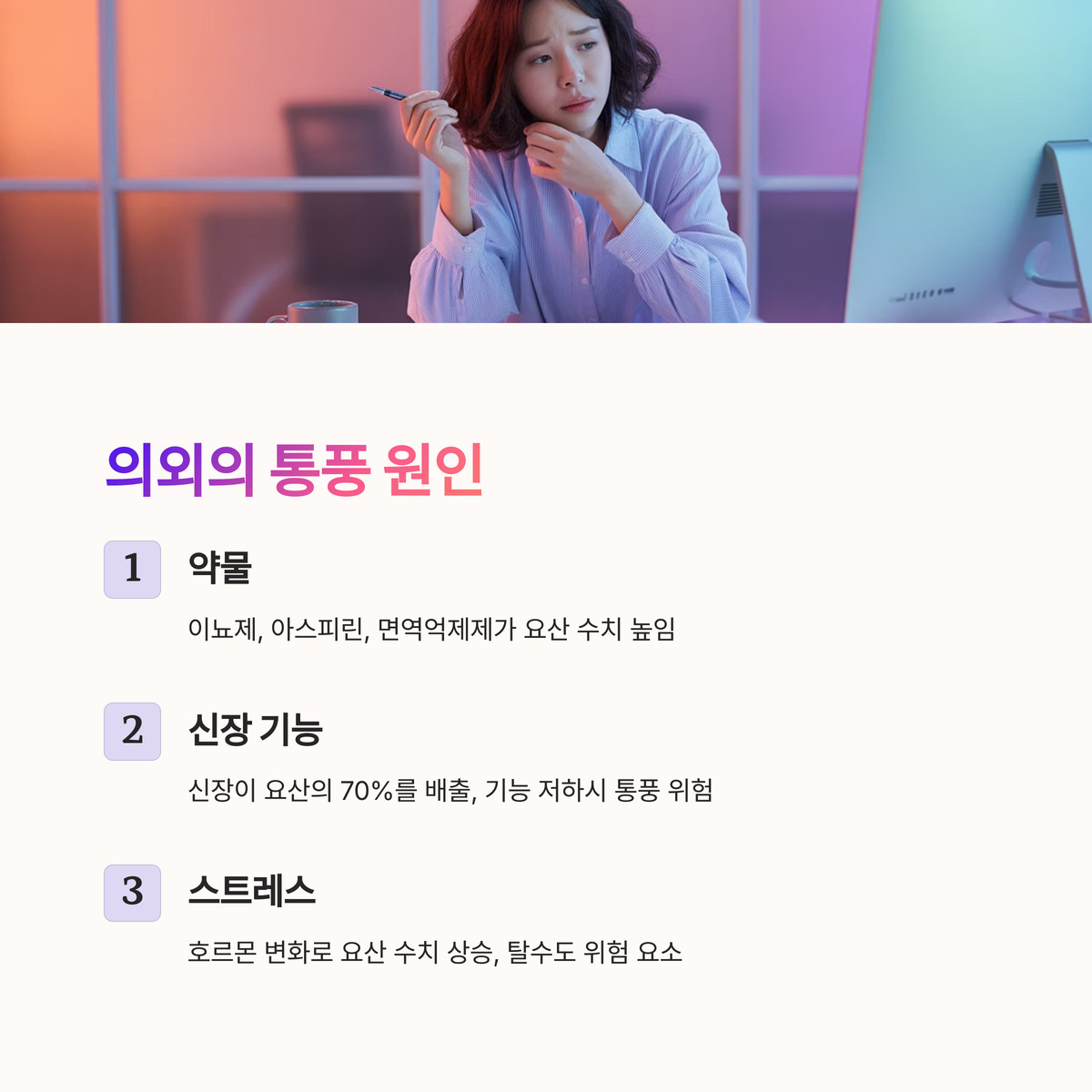 스트레스와 탈수는 통풍 발작을 유발하는 방아쇠 역할을 해요. 스트레스는 호르몬 변화를 일으켜 요산 수치를 올리고, 탈수는 혈액 내 요산 농도를 높이죠. 여름철 땀을 많이 흘리거나 물을 적게 마시면 통풍 위험이 커져요.