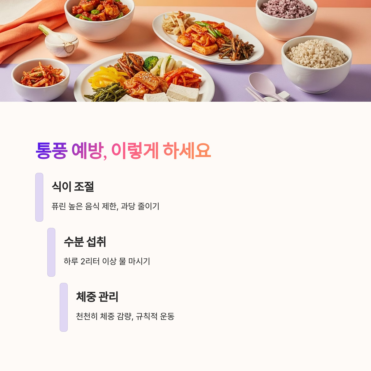 통풍 원인을 알았다면, 예방도 한결 쉬워져요. 퓨린이 많은 음식(내장류, 등푸른 생선)은 적게 먹고, 술은 특히 맥주를 피하세요. 물을 많이 마시고, 체중을 천천히 줄이는 것도 중요해요.