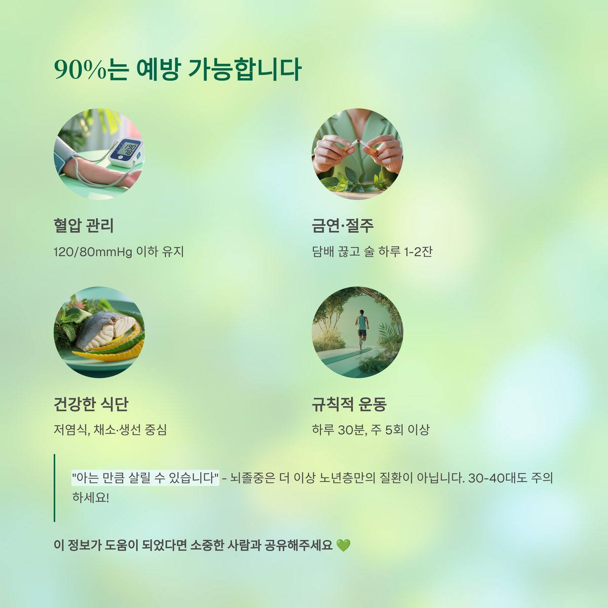 뇌졸중은 한 번 발생하면 재발 위험이 매우 높지만, 90% 이상은 평소 관리로 예방이 가능합니다.