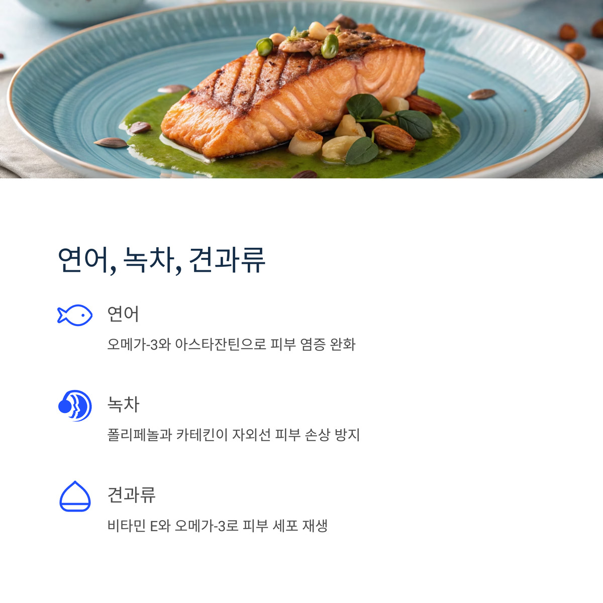 연어는 오메가-3 지방산과 아스타잔틴으로 피부 노화를 늦추는 데 탁월한 항산화 식품이에요. 아스타잔틴은 비타민 E보다 훨씬 강력한 항산화 효과로 피부의 산화 스트레스를 줄여주죠. 오메가-3는 피부의 염증을 완화하고, 수분을 유지해 촉촉한 피부를 만들어줘요.
