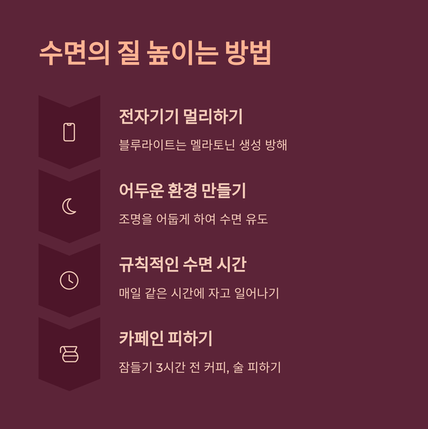 하루 수면 시간이 적당해도 질이 낮으면 소용없어요. 잠드는 데 20~30분 이상 걸린다면 수면 환경을 점검해보세요. 예를 들어, 잠자리에서 스마트폰을 멀리하고, 조명을 어둡게 하면 좋아요. 블루라이트가 멜라토닌 생성을 방해해서 잠을 늦출 수 있거든요. 규칙적인 생활도 큰 도움이 된답니다.
