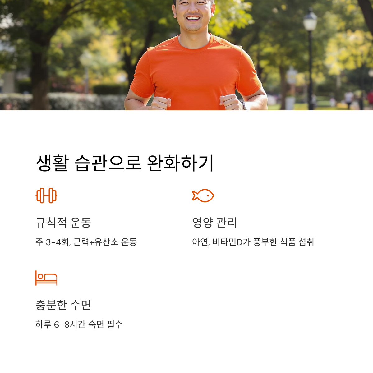 A: 증상이 가벼운 경우 운동, 식단, 스트레스 관리로 충분히 완화될 수 있어요.