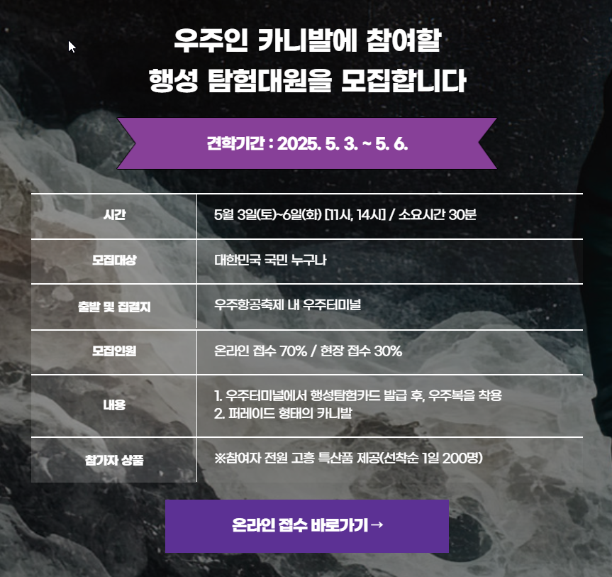 2025년 5월, 고흥으로 떠나 우주문명의 꿈을 함께 꾸어보세요!