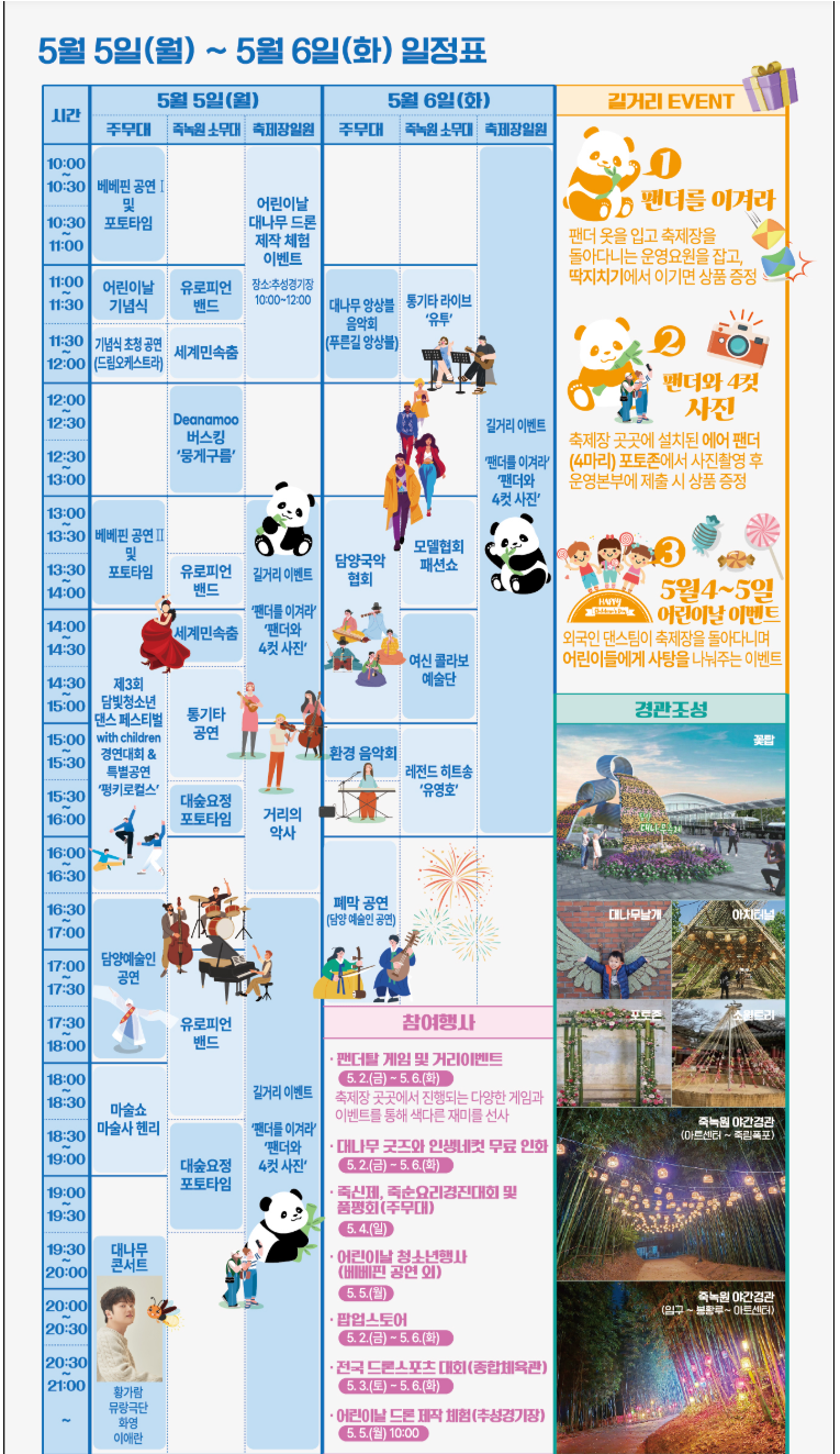 - 💰 입장료: 축제장 무료, 죽녹원 3,000원, 메타랜드 2,000원 (전액 페이백)