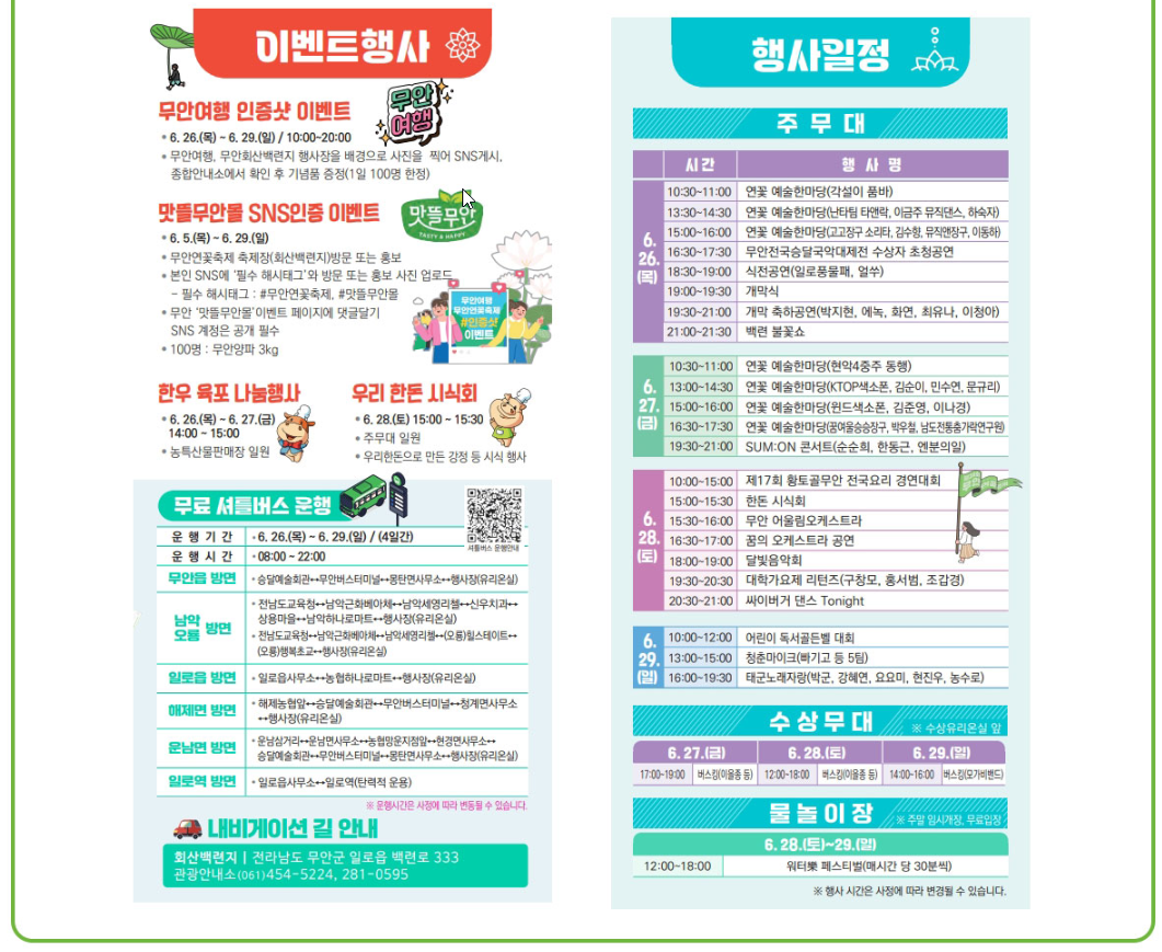 무안 연꽃축제는 부대 프로그램도 알차게 준비됐어요. 지역의 특색과 문화를 느낄 수 있는 행사들이 가득해요.
