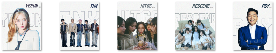 • RESCENE : 'Scene'과 'Scent'를 결합한 이름처럼 향기와 음악으로 기억을 떠올리는 콘셉트. 'UhUh', 'Love Attack' 등의 곡으로 활동하며 주목받는 신예 그룹