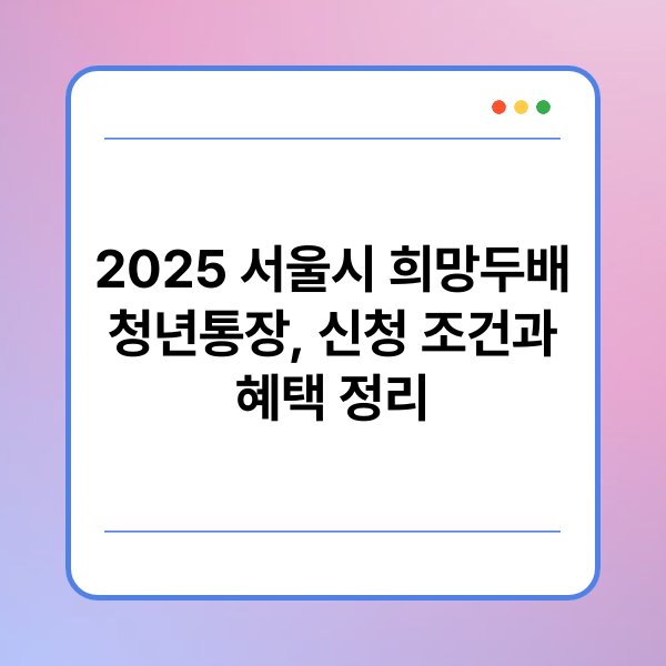 ✅2025 서울시 희망두배 청년통장은 청년 저축을 지원하는 프로그램입니다.