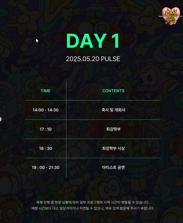 이틀간 펼쳐지는 화려한 행사예요! 세부 일정은 성결대 공식 인스타그램에서 확인하면 편리해요!