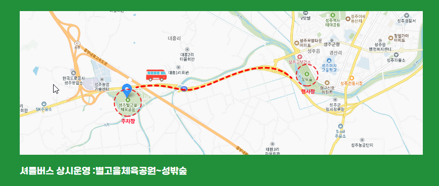- 셔틀버스(성주별고을체육공원, 성주군청) 이용으로 주차 걱정 없이!