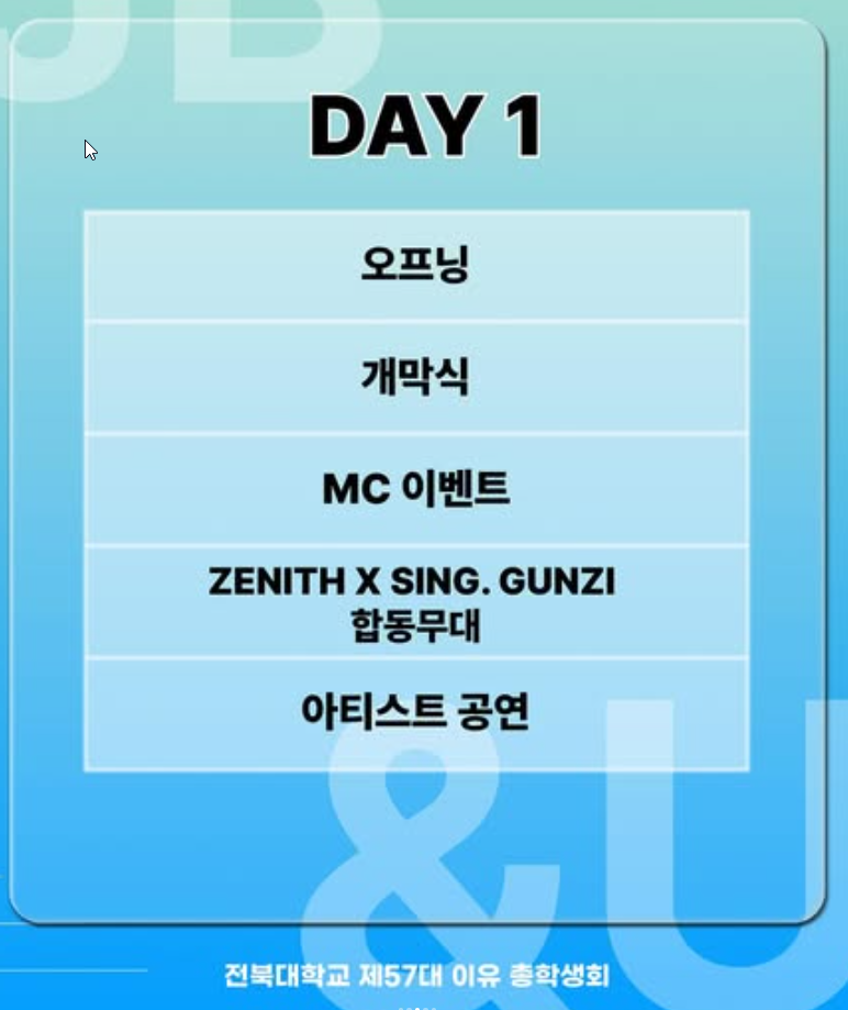 사흘간 이어지는 전북대 축제는 공연과 부스로 가득 차 있어요. 세부 일정은 전북대 공식 인스타그램에서 확인하는 걸 추천합니다.