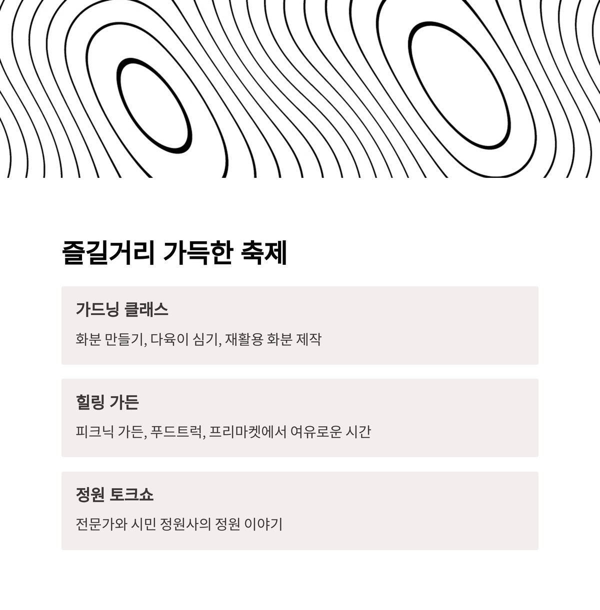 청주 가드닝 페스티벌은 정원을 배우고 체험하는 프로그램으로 가득해요. 가족과 함께 즐기기 좋은 체험들: