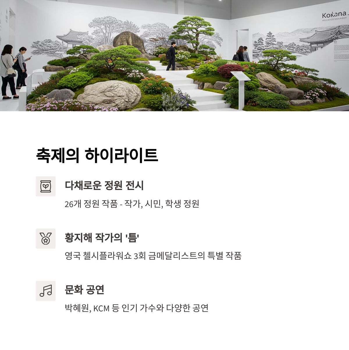 축제 앱으로 사전 예약(가드닝 클래스 등)과 실시간 이벤트를 확인하면 더 알차게 즐길 수 있어요.