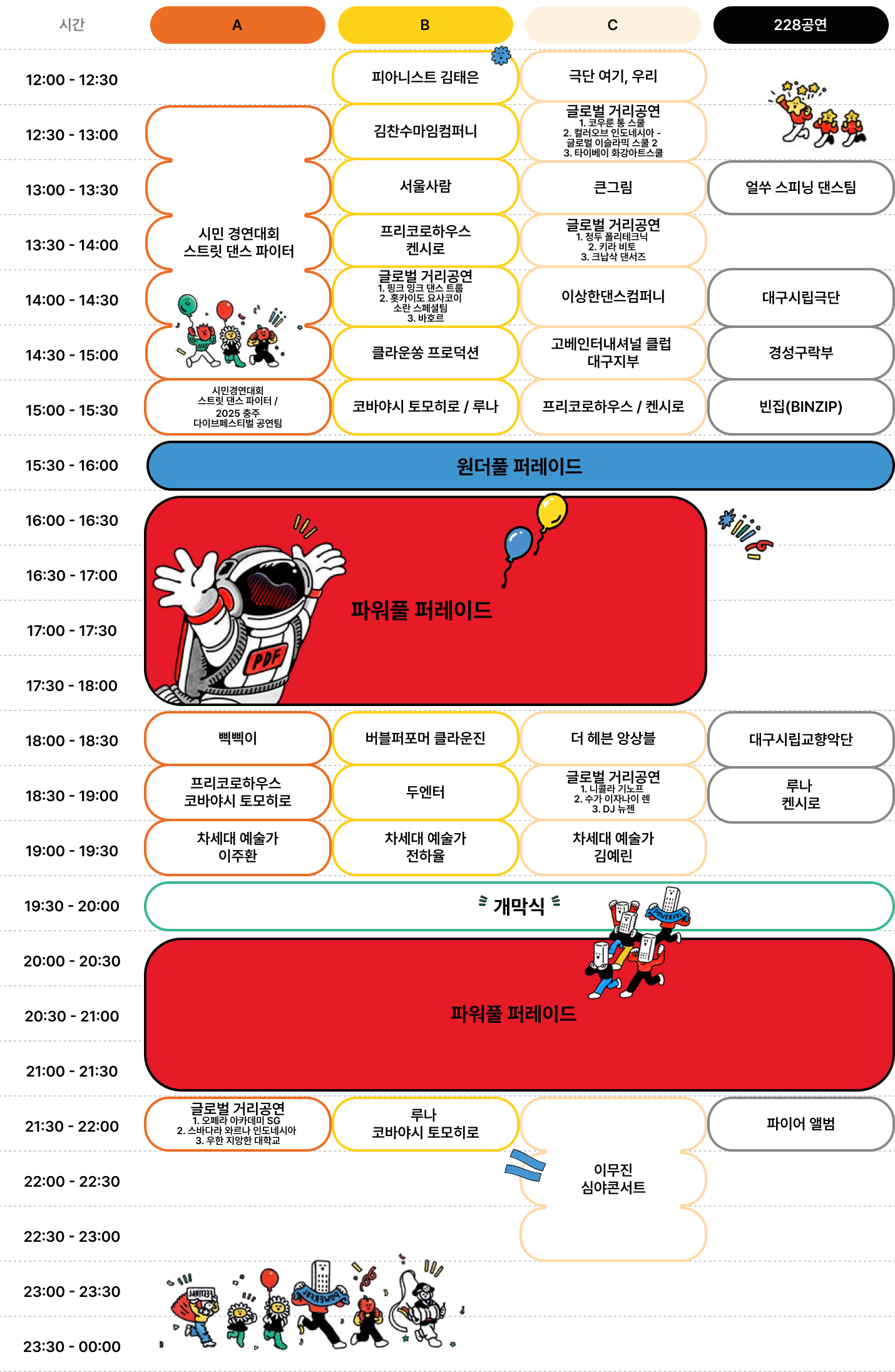 - 파워풀 퍼레이드(경연): 글로벌 퍼포먼스 팀의 화려한 공연