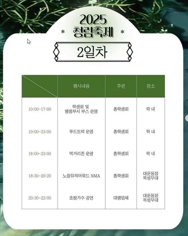 3일간 이어지는 화려한 행사예요! 세부 일정은 한남대 공식 인스타그램에서 확인하면 편리해요!
