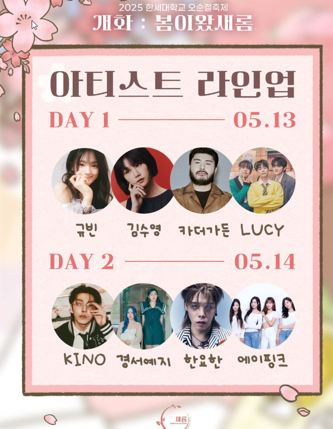 2025 한세대 축제 역대급 라인업! 에이핑크, LUCY, 규빈과 함께하는 봄의 설렘