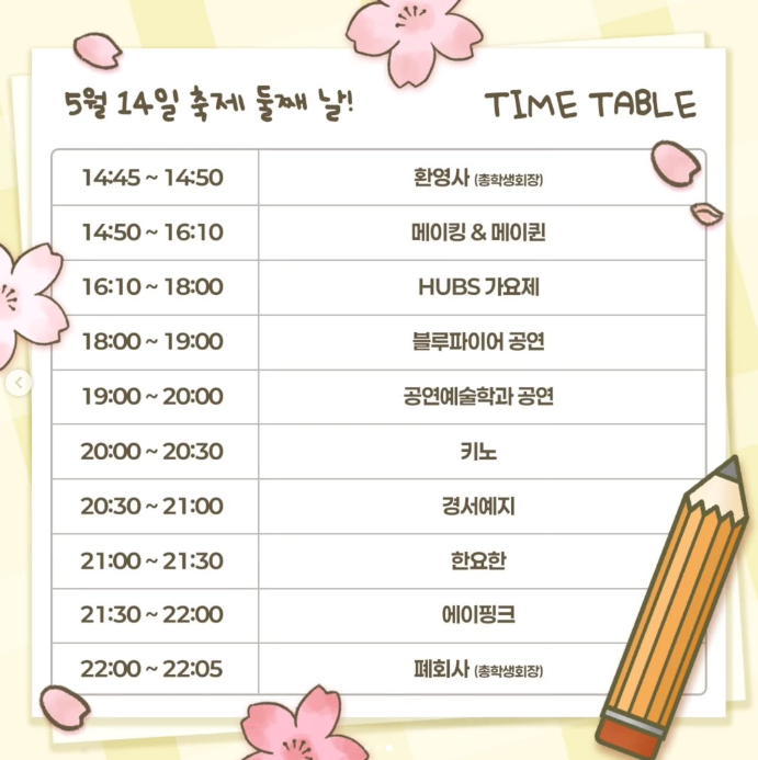이틀간 펼쳐지는 축제는 짧지만 강렬! 세부 일정은 한세대 공식 인스타그램에서 체크하세요!