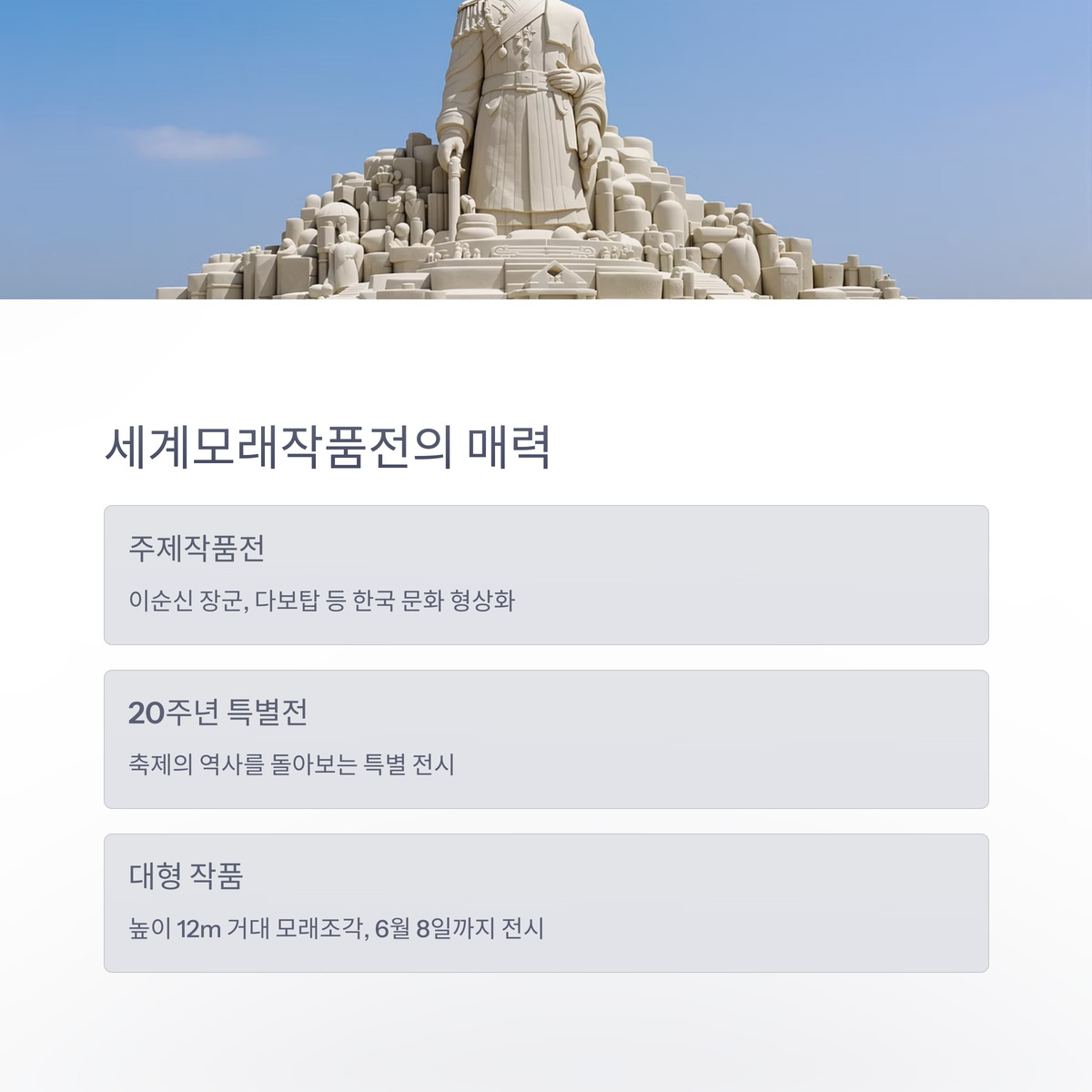 - 📅 일정: 2025년 5월 16일~19일 (모래조각 전시 ~6월 8일)