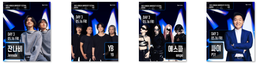 2025 홍익대 축제 화양연화! 키키, 에스파, 싸이와 예술로 물드는 뜨거운 봄밤이에요