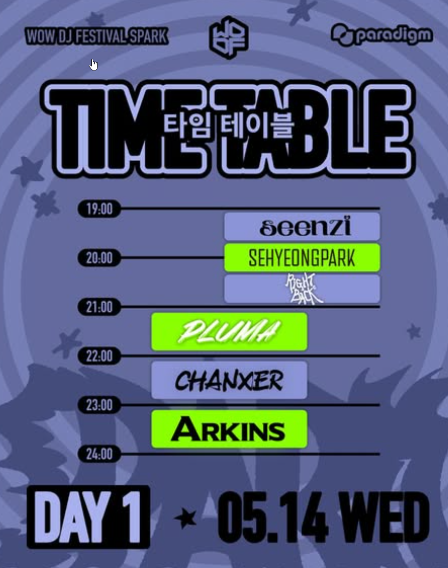- 타임테이블 확인: 공연 시간 미리 체크해요.