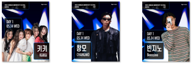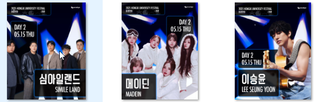 3일간 펼쳐지는 화려한 행사예요! 세부 일정은 홍익대 공식 인스타그램에서 확인하면 편리해요!