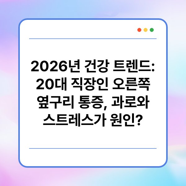 최근 들어 20대 직장인들 사이에서 오른쪽 옆구리 통증을 호소하는 경우가 늘어나고 있습니다. 특히 과로와 스트레스가 원인으로 지목되고 있는데요, 이러한 증상은 단순한 피로감으로 넘길 수 없답니다. 이 글에서는 2026년 건강 트렌드와 함께 직장인들이 겪고 있는 통증의 원인과 대처 방법에 대해 알아보도록 하겠습니다. 이 글을 통해 건강한 직장 생활을 위한 유용한 정보를 찾아보세요!