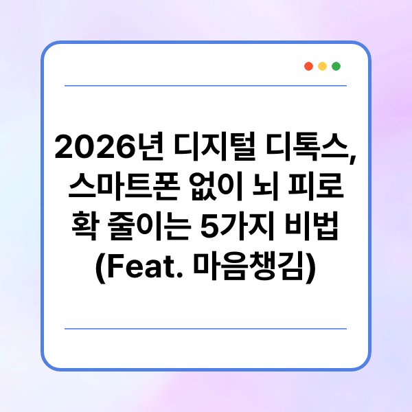 안녕하세요, 여러분! 요즘 스마트폰 사용이 늘면서 뇌가 피로해지는 경험, 다들 한번쯤 해보셨을 거예요. 그래서 오늘은 2026년 디지털 디톡스를 위해 스마트폰 없이 뇌의 피로를 확 줄이는 5가지 비법을 소개해드리려고 해요. 마음챙김을 포함한 이 방법들은 간단하면서도 효과적이니, 함께 알아보시면 좋겠어요!
