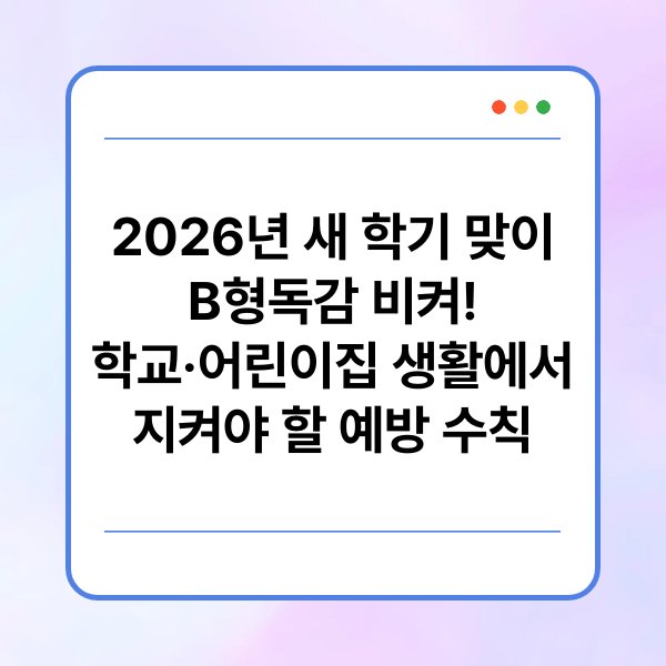 2026년 새 학기가 다가오고 있습니다. 새로운 시작을 준비하는 만큼, 건강도 잊지 말아야겠죠? 특히 B형 독감이 유행할 가능성이 높아지는 시기이니, 학교와 어린이집에서 지켜야 할 예방 수칙을 함께 알아보도록 하겠습니다. 이번 기회에 예방 수칙을 잘 숙지하신다면, 아이들의 건강을 지키는 데 큰 도움이 될 거예요. 어떤 방법들이 있는지 함께 살펴봐요!