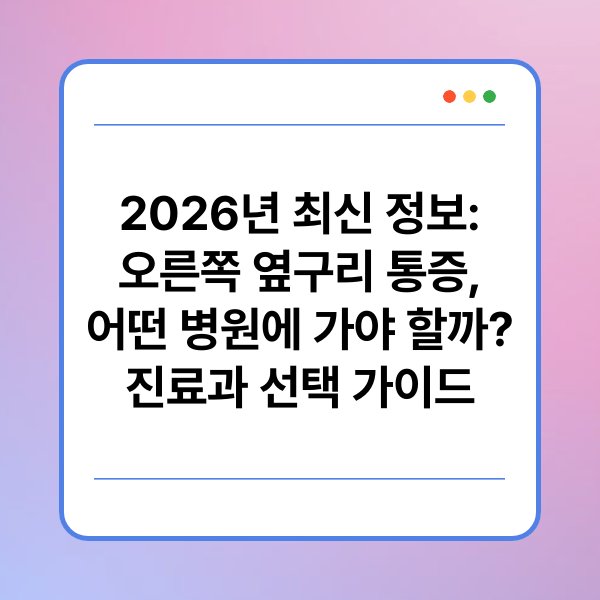 오른쪽 옆구리 통증은 많은 분들이 경험하는 증상 중 하나입니다. 하지만 이 통증이 발생할 때, 어떤 병원에 가야 할지 고민되는 경우가 많죠. 특히 2026년 최신 정보를 기반으로 적절한 진료과를 선택하는 것은 더욱 중요해졌습니다. 오늘은 오른쪽 옆구리 통증이 발생했을 때, 어떤 병원과 진료과를 방문하면 좋을지 자세히 안내해드리겠습니다. 함께 알아보시는 건 어떨까요?