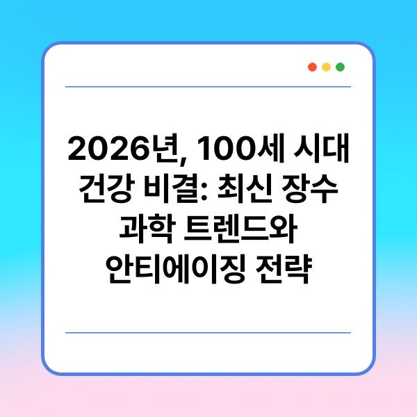 안녕하세요! 2026년이 다가오면서 '100세 시대'라는 말이 더욱 익숙해지고 있습니다. 우리는 이제 더 오래, 건강하게 살 수 있는 시대에 살고 있는데요. 오늘은 최신 장수 과학 트렌드와 안티에이징 전략에 대해 이야기해보려고 합니다. 건강한 노후를 위해 무엇을 실천할 수 있을지 함께 알아보면 좋겠어요. 궁금하시죠? 그럼 시작해볼게요!