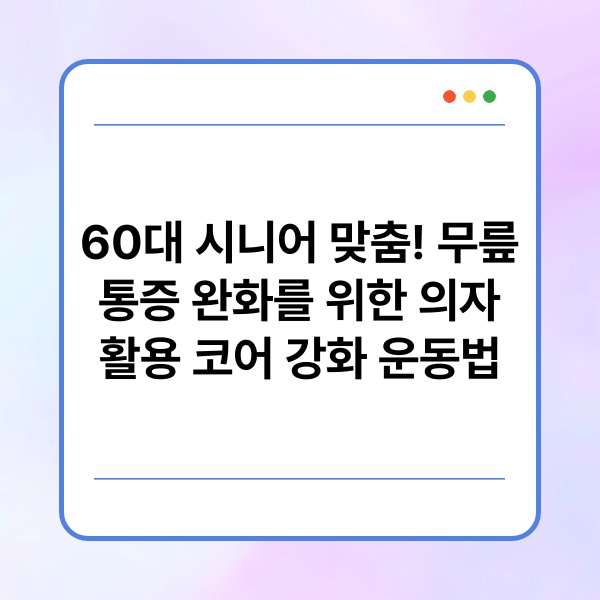 무릎 통증으로 고생하시는 분들, 정말 많으시죠? 특히 60대 시니어 분들은 일상생활에서 무릎 통증을 느끼는 경우가 많아요. 오늘은 그런 통증을 완화하면서도 코어를 강화할 수 있는 의자 활용 운동법에 대해 이야기해보려고 해요. 이 운동법은 집에서도 쉽게 따라 하실 수 있어요. 함께 해보면 좋겠죠?